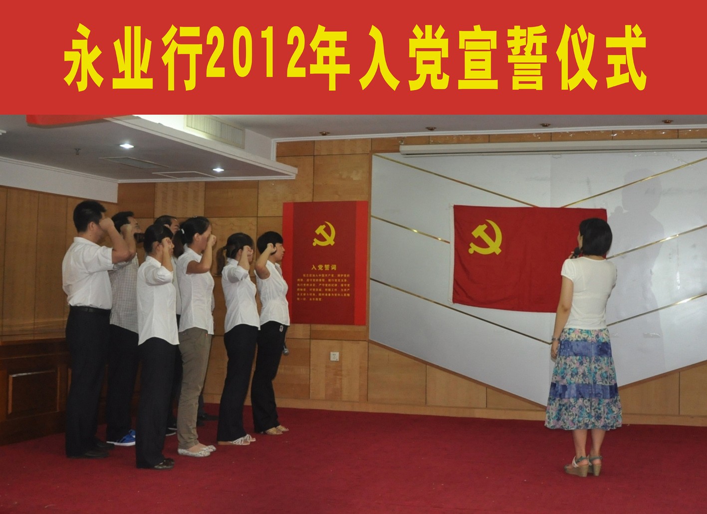 本次宣誓儀式在湖北消防招待所隆重舉行,永業(yè)行黨委全體成員和公司非黨人士高管、副總經(jīng)理及以上職務(wù)人員參加了儀式。黨委副書記靳劍輝擔(dān)任儀式主持人并向新入黨的同志表示祝賀。在領(lǐng)誓人楊雪蓮的帶領(lǐng)下,國土事務(wù)部總經(jīng)理吳學(xué)鋒、礦產(chǎn)評(píng)估部副總經(jīng)理孫宇、技術(shù)部副總經(jīng)理李尚平、十堰分部助理總經(jīng)理王美、黃石分部高級(jí)經(jīng)理朱雙雙、房地產(chǎn)評(píng)估一部經(jīng)理王建波、孝感分部經(jīng)理吳賢玲、地礦咨詢一部助理經(jīng)理張忠超等8名新黨員舉右手握拳并面向黨旗宣讀入黨誓詞。新黨員宣誓后,黨委副書記靳劍輝代表黨委對(duì)他們提出要求,希望新黨員在各自崗位上加倍努力工作,充分發(fā)揮黨員的先鋒模范作用,無愧于共產(chǎn)黨員的光榮稱號(hào)。