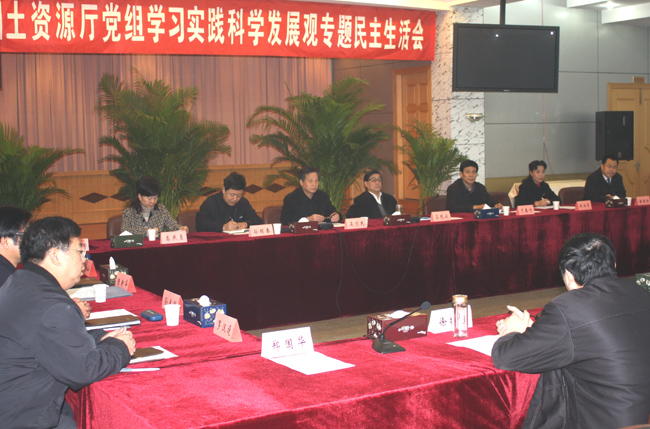會(huì)議由省國(guó)土資源廳黨組書(shū)記、廳長(zhǎng)杜云生主持,國(guó)土資源廳全部黨組成員參加了會(huì)議,包括副廳長(zhǎng)熊政春、李成林、陳新武,紀(jì)檢組長(zhǎng)丁玉洋、總工程師徐振坤、執(zhí)法監(jiān)察總隊(duì)長(zhǎng)李維學(xué)、國(guó)土整治辦主任鄭國(guó)華,地質(zhì)災(zāi)害辦主任夏早發(fā)等,分別介紹了自己深入學(xué)習(xí)科學(xué)發(fā)展觀的的認(rèn)識(shí)和感受。