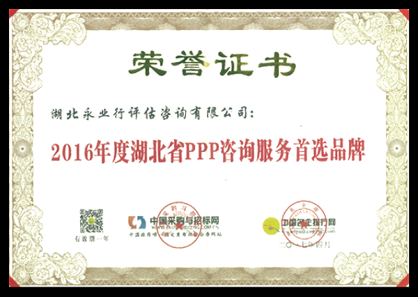 2016年度湖北省PPP咨詢服務(wù)首選品牌