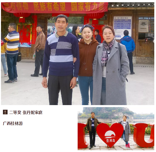 本次感恩旅游大獎共設(shè)獎項三類,共8名:一等獎1名,家庭海外游;二等獎2名,父母國內(nèi)游;三等獎5名,父母省內(nèi)游。
