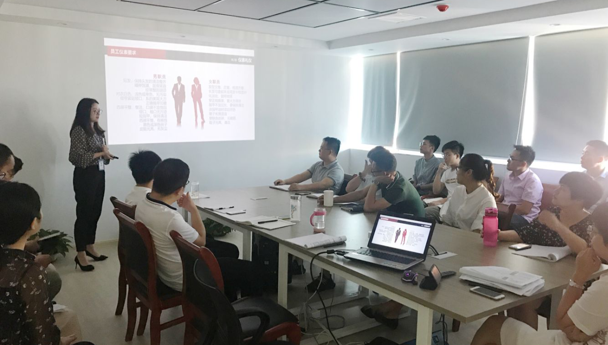 海南分公司助理總經(jīng)理陳娟通過PPT展示,將商務(wù)禮儀基本常識和公司的實際情況結(jié)合起來,圍繞實際業(yè)務(wù)開拓主講了儀表禮儀、儀態(tài)禮儀、辦公禮儀、商務(wù)交往中的禮儀、溝通中的禮儀、宴會禮儀等內(nèi)容,并與大家進行了互動交流。