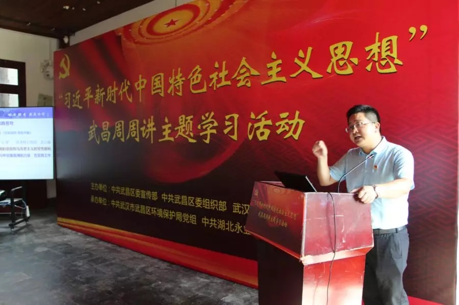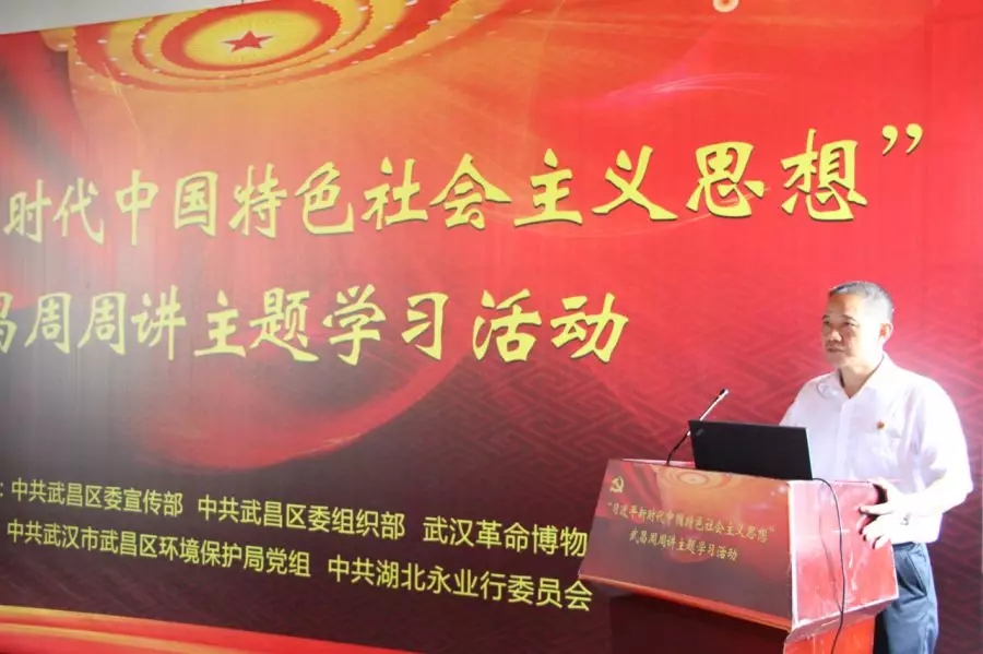 8月10日上午,“習(xí)近平新時代中國特色社會主義思想”武昌周周講主題學(xué)習(xí)活動在武漢革命博物館(中共五大會址紀(jì)念館)舉辦。本次活動由中共武昌區(qū)委宣傳部、組織部,武漢革命博物館主辦,中共武漢市武昌區(qū)環(huán)境保護(hù)局黨組、中共湖北永業(yè)行委員會承辦。區(qū)委常委、區(qū)委組織部部長胡太榮,區(qū)委常委、區(qū)委宣傳部部長王興文,副區(qū)長黃豐宙,區(qū)紀(jì)委監(jiān)委派駐區(qū)市場監(jiān)管局紀(jì)檢監(jiān)察工作組組長潘菱出席活動,區(qū)環(huán)保局全體黨員干部、永業(yè)行董事長兼總裁潘世炳、執(zhí)行總裁王琴、副總裁雷小軍、劉曉峰及50余名黨員代表參加活動。區(qū)環(huán)保局黨組書記汪火應(yīng)主持活動。