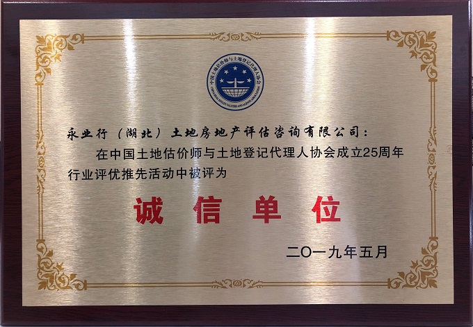 中國土地估價師與土地登記代理人協(xié)會誠信單位