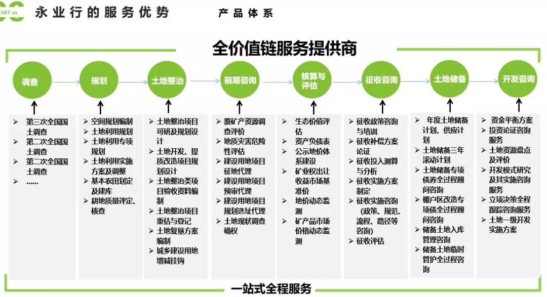 永業(yè)行擁有一支技術(shù)強、專業(yè)精、具有團隊協(xié)作精神的精英團隊,專業(yè)涉及自然資源研究、環(huán)境資源、價值評估、投資咨詢等多個領(lǐng)域,長期致力于產(chǎn)品研發(fā)創(chuàng)新、技術(shù)轉(zhuǎn)型升級、成果轉(zhuǎn)化推廣等研發(fā),可提供從土地調(diào)查、規(guī)劃整治、前期咨詢、核算評估、征收咨詢、土地儲備、開發(fā)咨詢等一條龍的全價值鏈服務(wù)。