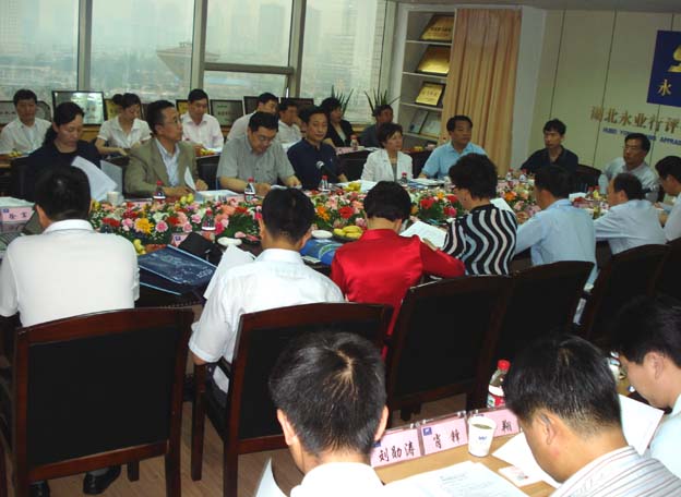 董事長方國成代表永業(yè)行向考察團的到來表示熱烈歡迎,總裁潘世炳介紹了公司發(fā)展概況、應(yīng)對金融危機的措施及未來發(fā)展規(guī)劃,并提出了中介機構(gòu)發(fā)展的有關(guān)建議。考察團成員就評估行業(yè)的管理、風(fēng)險控制、市場競爭、稅收、金融等相關(guān)政策進行了討論和交流。座談會上,沈沖局長總結(jié)指出,要從戰(zhàn)略層面認識中介服務(wù)業(yè)的地位問題,要在實踐中不斷完善適合智力服務(wù)行業(yè)的管理和服務(wù)模式,加強精英人才儲備,推動行業(yè)健康有序發(fā)展。希望永業(yè)行繼續(xù)做強做大,實現(xiàn)“百年老店”這一長遠目標(biāo),進而發(fā)展成為一項永久的事業(yè)。