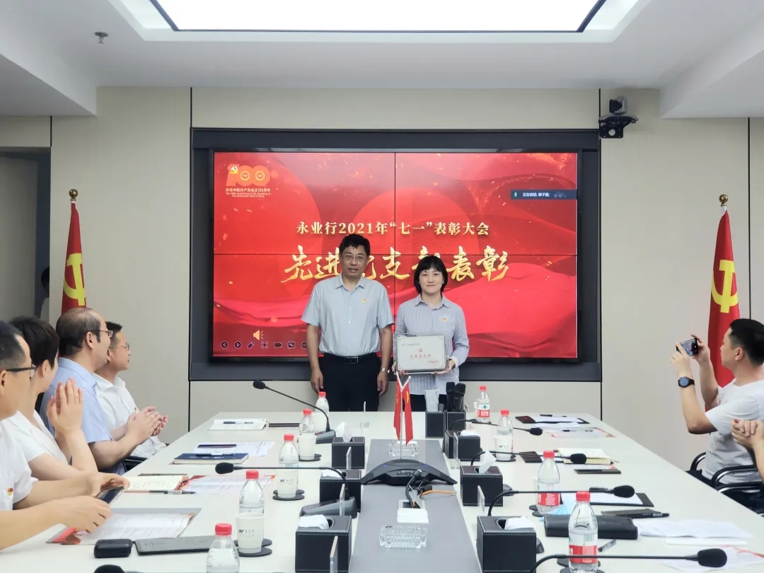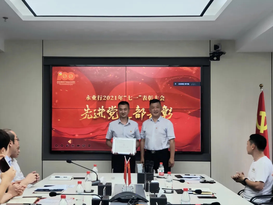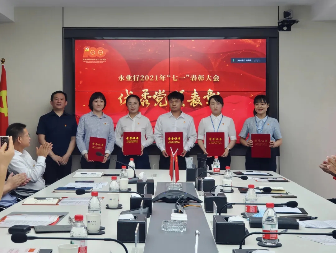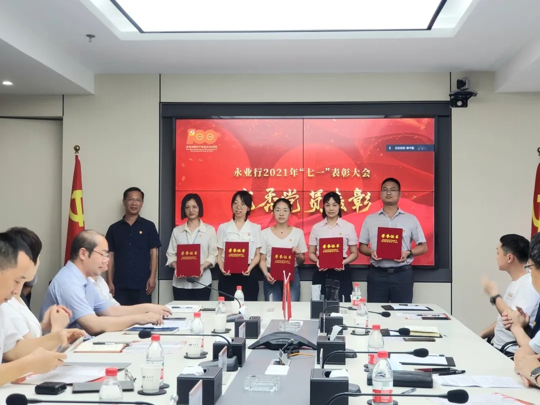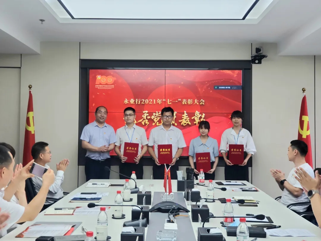 大會(huì)在雄壯的國(guó)歌聲中拉開(kāi)帷幕。永業(yè)行黨委委員、副總裁雷小軍、文云波分別宣讀了《關(guān)于表彰2021年先進(jìn)黨支部的決定》《關(guān)于表彰2021年優(yōu)秀黨員的決定》,公司黨委對(duì)自然資源黨支部等3個(gè)先進(jìn)黨支部、劉亞玲等14名優(yōu)秀共產(chǎn)黨員進(jìn)行了表彰并頒獎(jiǎng)。