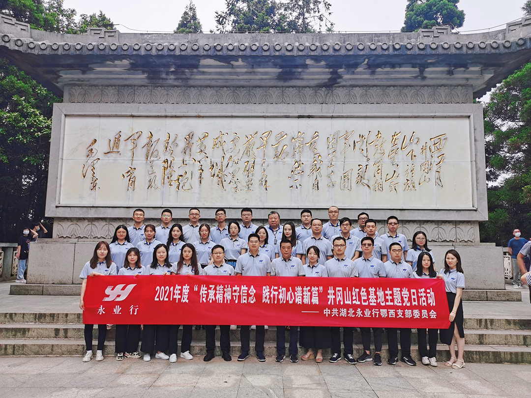 為扎實推進黨史學(xué)習(xí)教育,進一步強化黨員意識、提升黨性修養(yǎng),7月23日,中共湖北永業(yè)行鄂西黨支部赴井岡山開展“傳承精神守信念 踐行初心譜新篇” 主題黨日活動。永業(yè)行黨委委員、鄂西黨支部書記雷小明及30余名支部成員參加本次活動。