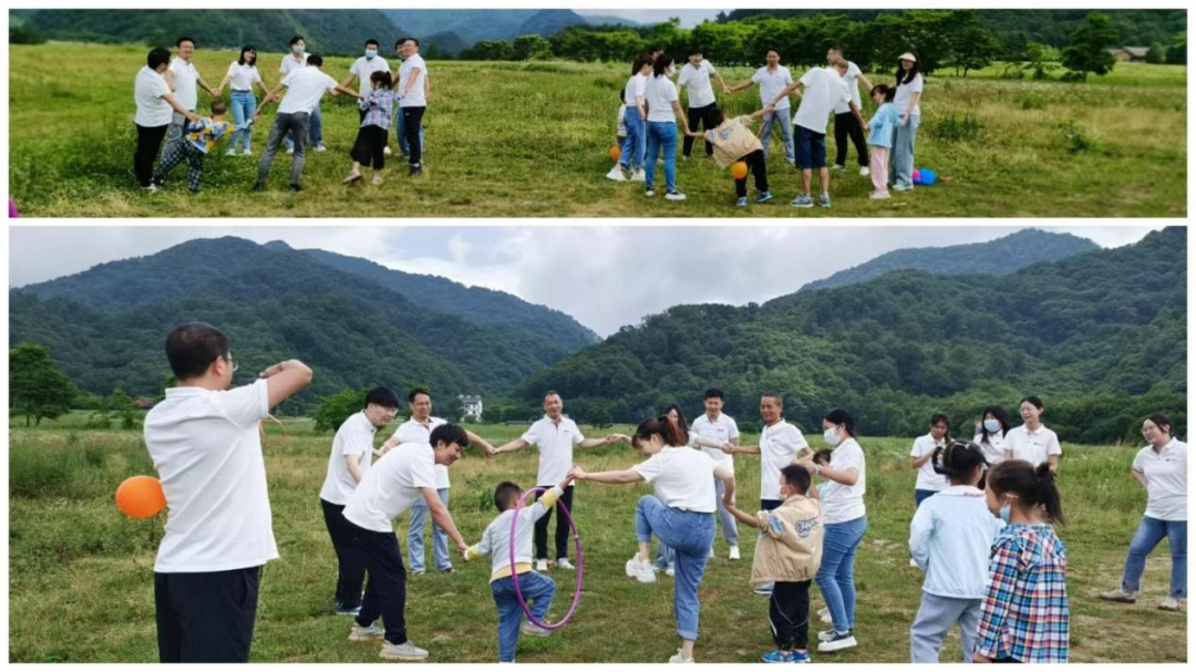 大九湖畔,一圈到底、筷子夾球和兩人三足踩氣球……大家在一片歡聲笑語中敞開心扉,以飽滿的熱情參與到拓展活動中。