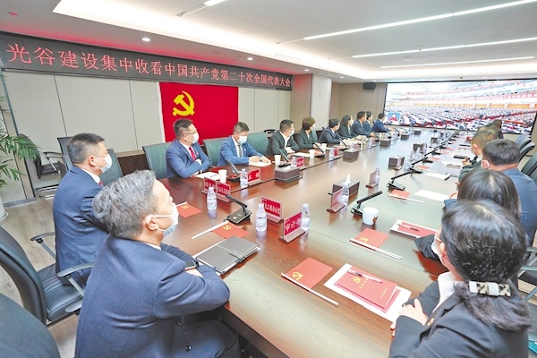 10月16日,武漢光谷建設投資有限公司黨員代表集中收看黨的二十大開幕會直播。(湖北日報全媒記者 魏錸 攝)