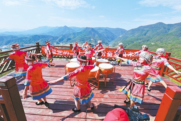 10月16日,松滋市卸甲坪土家族鄉(xiāng)群眾載歌載舞喜慶黨的二十大勝利召開。 ? ?(視界網(wǎng) 楊松剛 攝)