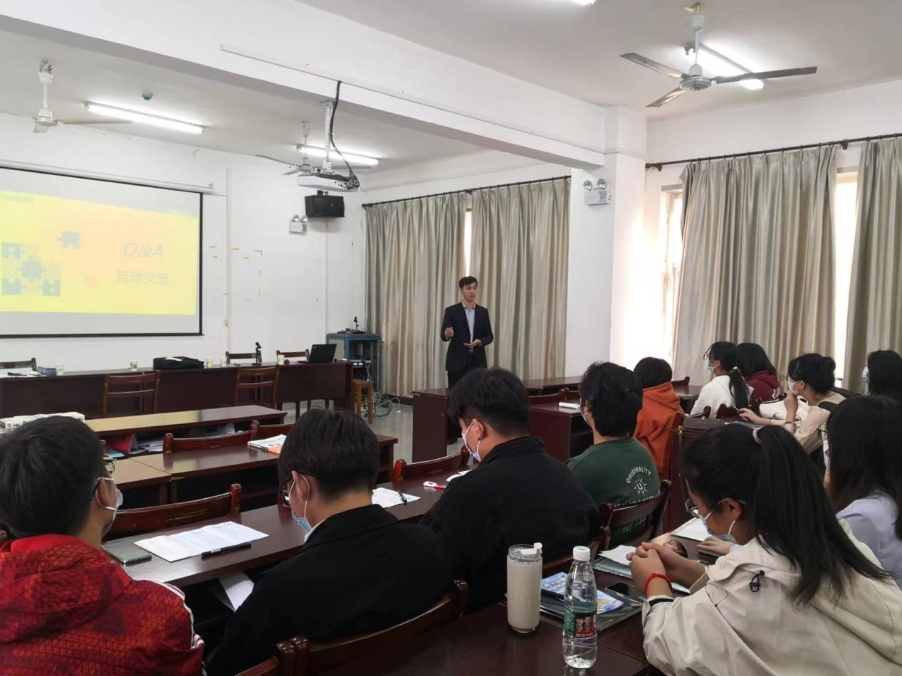 在企業(yè)知識互動問答環(huán)節(jié),同學(xué)們踴躍舉手提問,孝感分部總經(jīng)理梁小虎就公司的規(guī)章制度、福利待遇、企業(yè)文化、組織架構(gòu)等相關(guān)問題,積極為大家答疑解惑。孝感分部綜合部也就公司人力資源政策進行了補充介紹,并向在座的學(xué)子們送上了精心準(zhǔn)備的小禮品,現(xiàn)場氛圍輕松活躍。宣講結(jié)束后,同學(xué)們紛紛遞上個人簡歷,表達了爭做“永業(yè)行新人”的積極愿望。