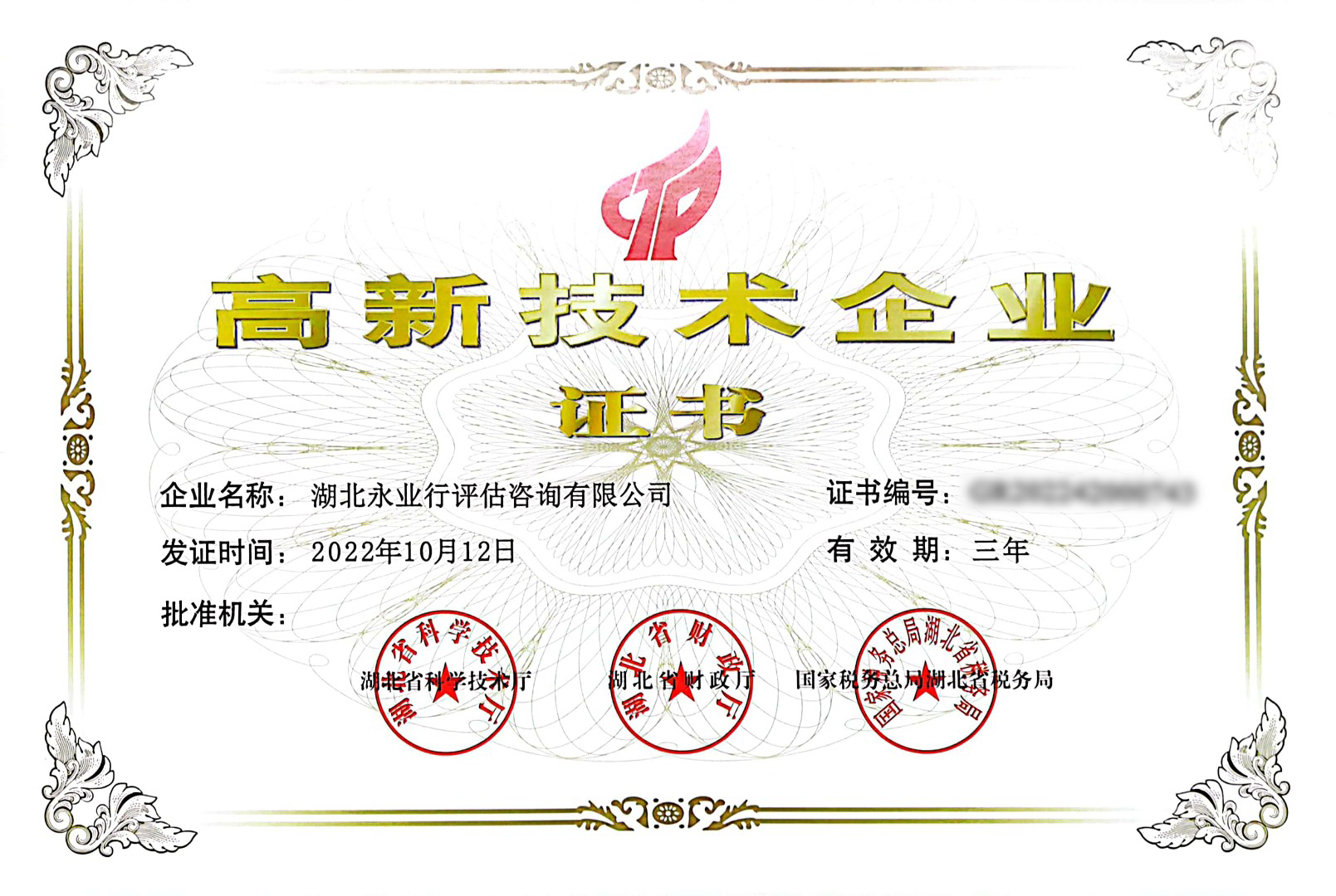 國(guó)家高新技術(shù)企業(yè)——湖北永業(yè)行評(píng)估咨詢有限公司