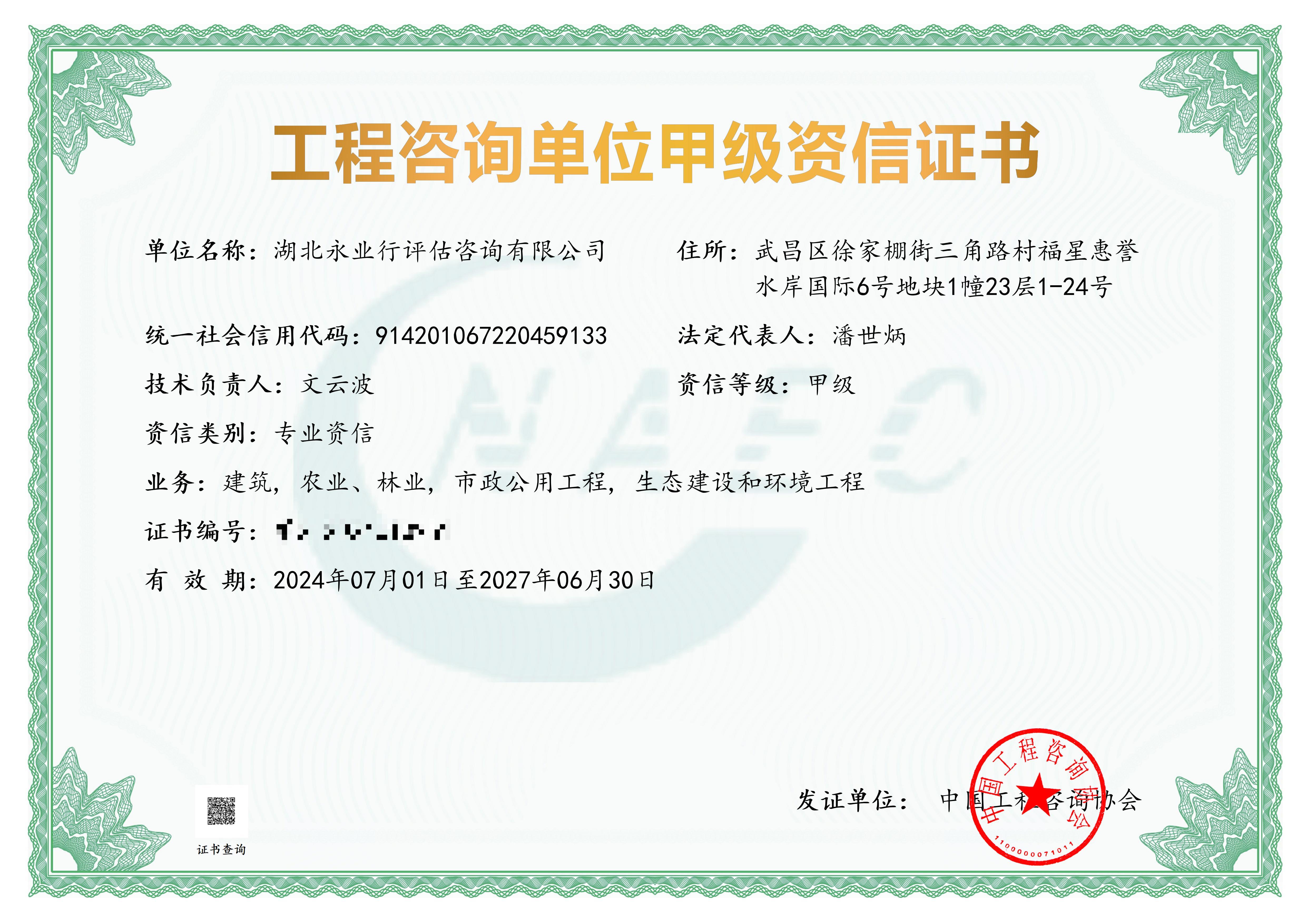 工程咨詢單位甲級資信證書(建筑,農(nóng)業(yè),林業(yè),市政公用工程,生態(tài)建設(shè)和環(huán)境工程)