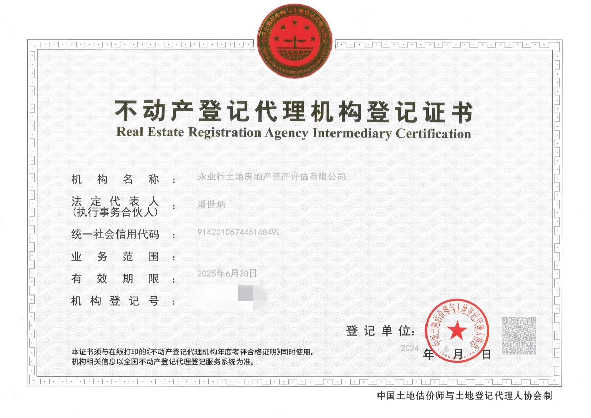 不動產(chǎn)登記代理機(jī)構(gòu)登記證書