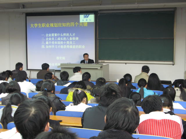11月24日,永業(yè)行總裁、武漢科技學院客座教授潘世炳博士應邀到武漢科技學院,為近300名大學生做了題為《大學生職業(yè)規(guī)劃應知的四個關鍵問題》的講座,從企業(yè)到底需要什么樣的大學生、企業(yè)員工成長的八條鐵律、不受歡迎的十類員工以及大學生如何為滿足社會需要來學習等四個方面進行了分析、講解,并回答了大家的提問。