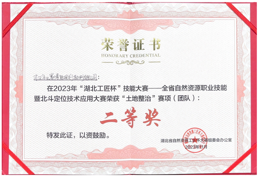 2023年“湖北工匠杯”技能大賽--全省自然資源職業(yè)技能暨北斗定位技術(shù)應(yīng)用大賽“土地整治”賽項(xiàng)二等獎(jiǎng)