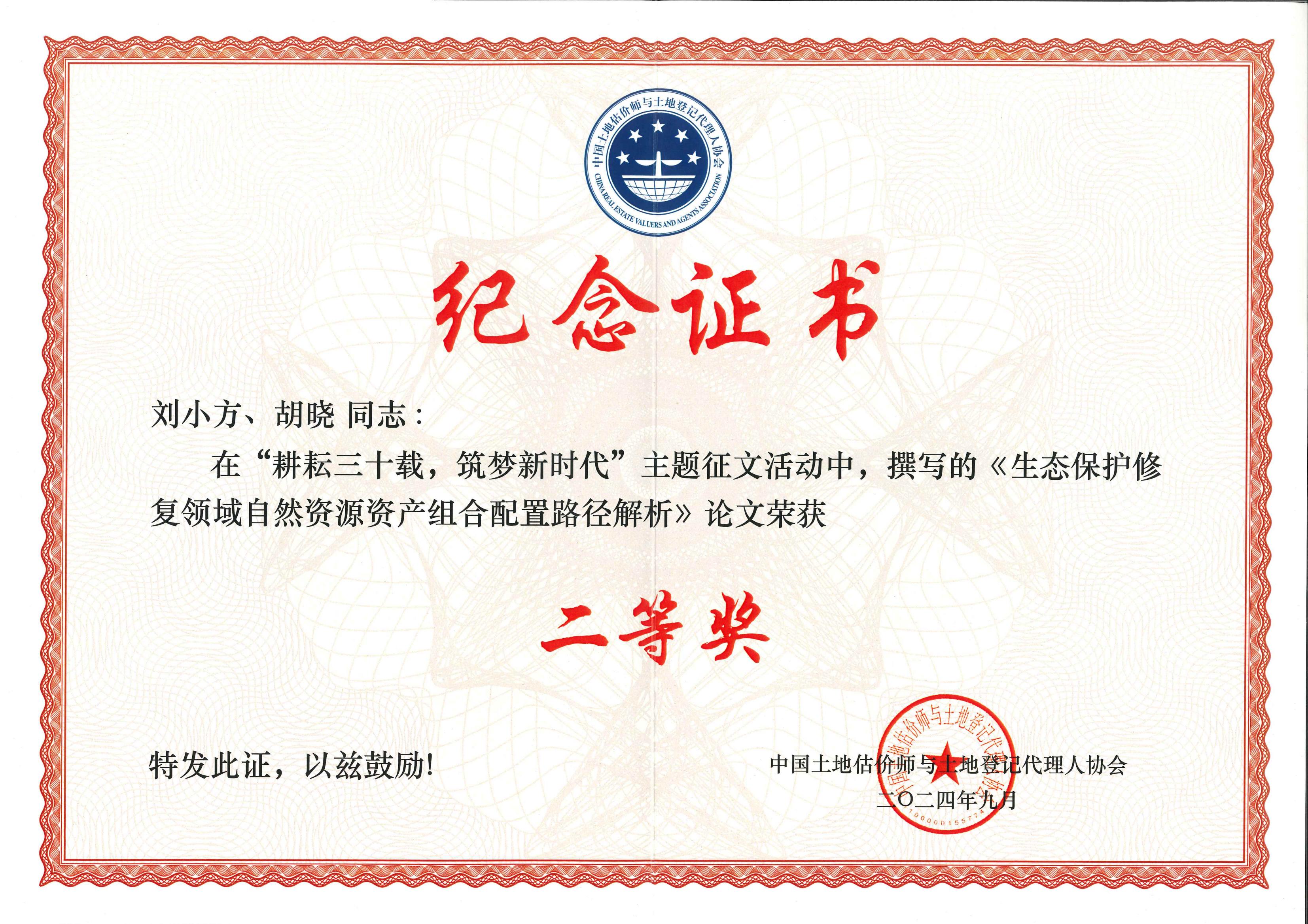 中估協(xié)30周年-優(yōu)秀論文二等獎(jiǎng)(劉小方、胡曉)