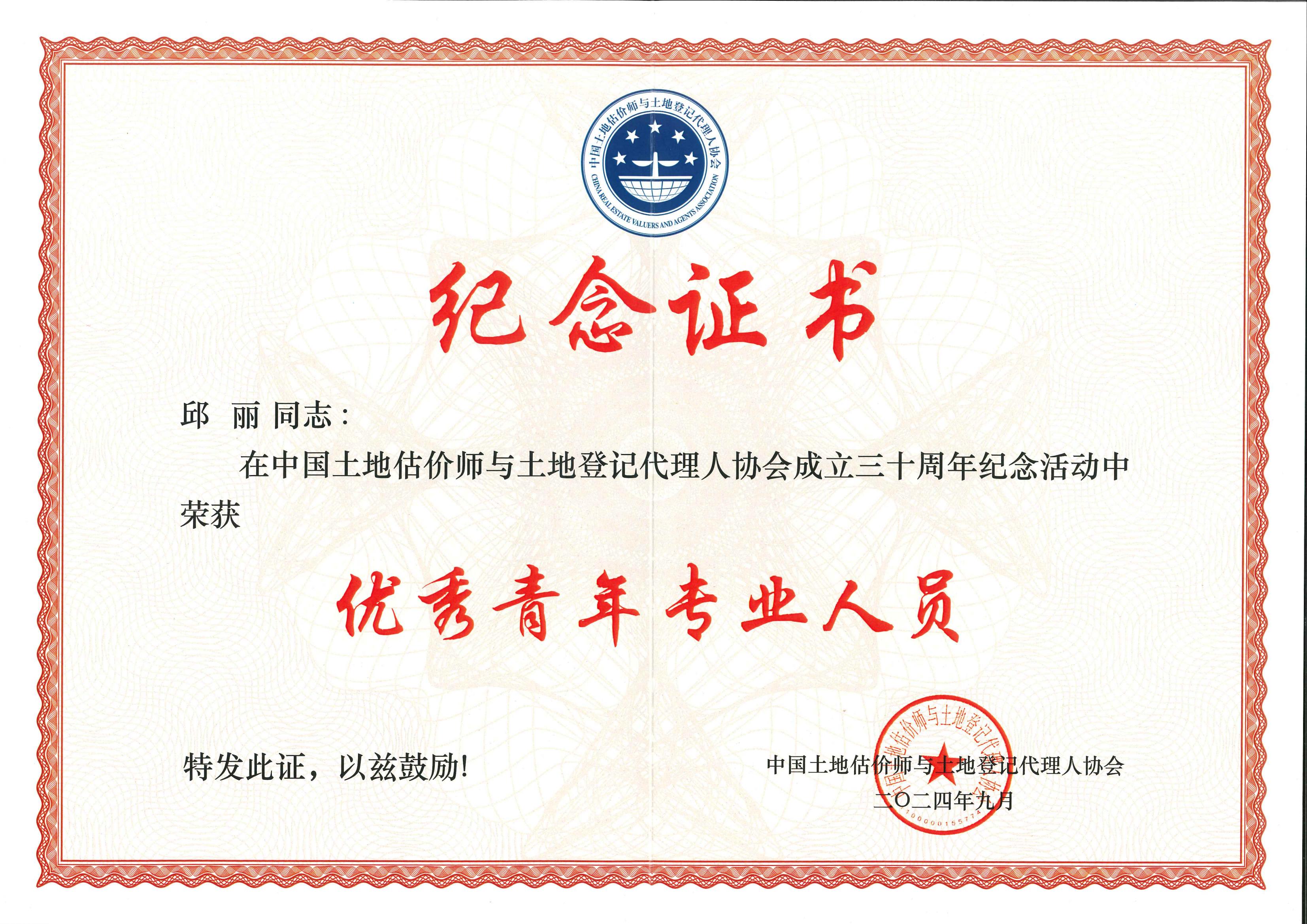 中估協(xié)30周年-優(yōu)秀青年專業(yè)人員(邱麗)
