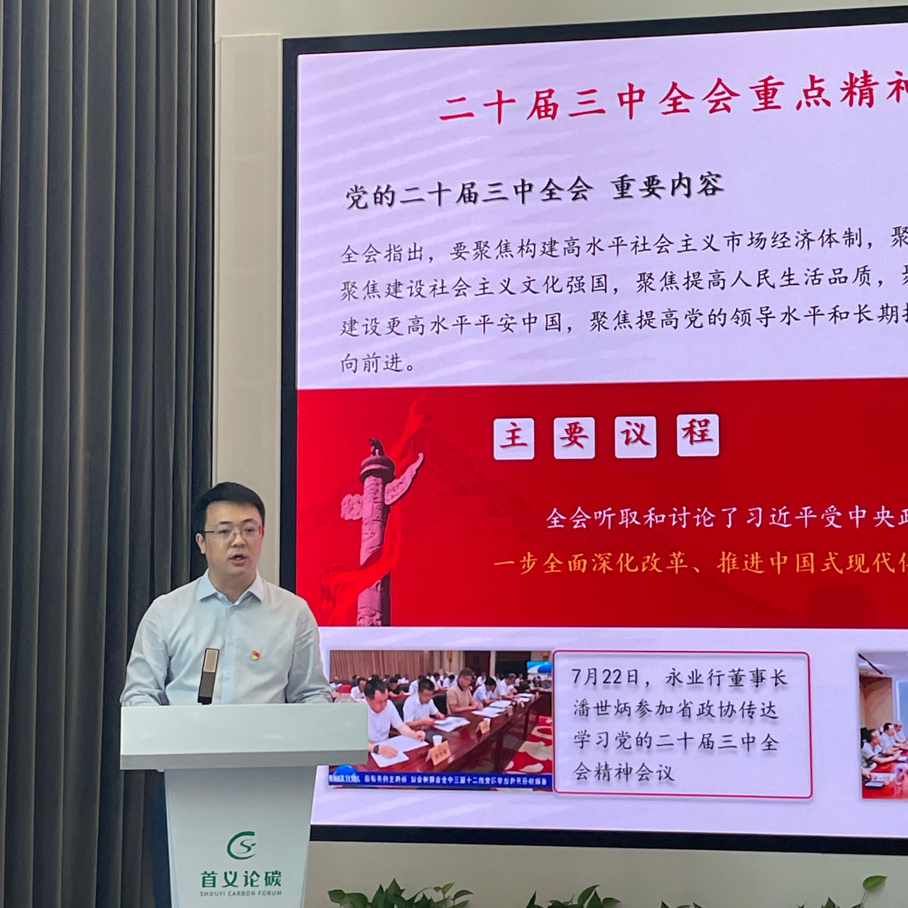 文云波結(jié)合永業(yè)行黨建工作實(shí)際,分享了永業(yè)行將思想和行動(dòng)統(tǒng)一到全會(huì)精神上的改革創(chuàng)新經(jīng)驗(yàn)做法。他表示,永業(yè)行始終堅(jiān)持黨建引領(lǐng)、參政議政、企業(yè)經(jīng)營(yíng)“三結(jié)合”,將黨建文件學(xué)習(xí)和公司戰(zhàn)略研討、業(yè)務(wù)優(yōu)化、咨政建言相結(jié)合,極大提升了參政議政的針對(duì)性和專(zhuān)業(yè)服務(wù)的實(shí)效性。近年來(lái),聚焦“資源-資產(chǎn)-資本”轉(zhuǎn)化路徑,圍繞大財(cái)政體系深化賦能,協(xié)同降碳、減污、擴(kuò)綠、增長(zhǎng),推動(dòng)環(huán)境、金融、產(chǎn)業(yè)、投資等要素與經(jīng)濟(jì)活動(dòng)的耦合協(xié)調(diào),為區(qū)域發(fā)展提供智力支持和解決方案,全力賦能綠色轉(zhuǎn)型。2024年8月8日,湖北省委副書(shū)記、省長(zhǎng)王忠林等領(lǐng)導(dǎo)調(diào)研永業(yè)行,對(duì)永業(yè)行在綠色低碳發(fā)展、“資源—資產(chǎn)—資本”轉(zhuǎn)化路徑、大財(cái)政體系等方面的探索、創(chuàng)新實(shí)踐給予高度評(píng)價(jià),并對(duì)永業(yè)行在綠色低碳發(fā)展、三資轉(zhuǎn)換等方面寄予厚望。結(jié)合永業(yè)行實(shí)踐案例,深入解讀了二十屆三中全會(huì)關(guān)于推動(dòng)生態(tài)文明體制改革精神要義,為區(qū)域綠色發(fā)展轉(zhuǎn)型提供了相關(guān)思路建議。
