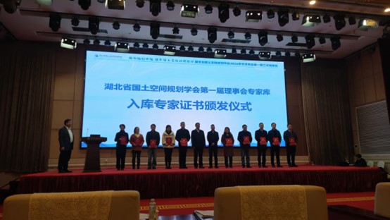 會議通報表彰優(yōu)秀論文、頒發(fā)入庫專家代表證書。永業(yè)行共4篇論文入選獲獎名單、。湖北省國土空間規(guī)劃學(xué)會副秘書長、永業(yè)行副總裁金建華代表永業(yè)行上臺領(lǐng)取專家聘書。