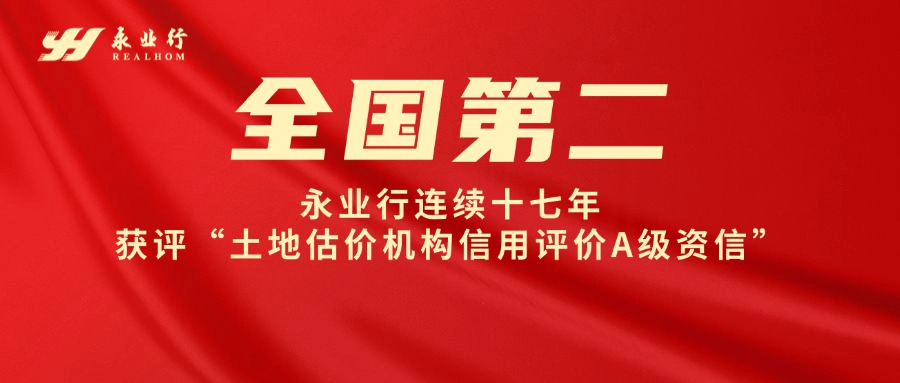 2024年12月25日,中國土地估價師與土地登記代理人協(xié)會(下簡稱“中估協(xié)”)發(fā)布“2025年度土地估價機構信用評價(A級資信)”結果,此次公布榮獲土地估價機構信用評價A級共120家、準A級共60家,永業(yè)行位列全國第二、湖北第一,連續(xù)17年獲評“土地估價機構信用評價A級”。