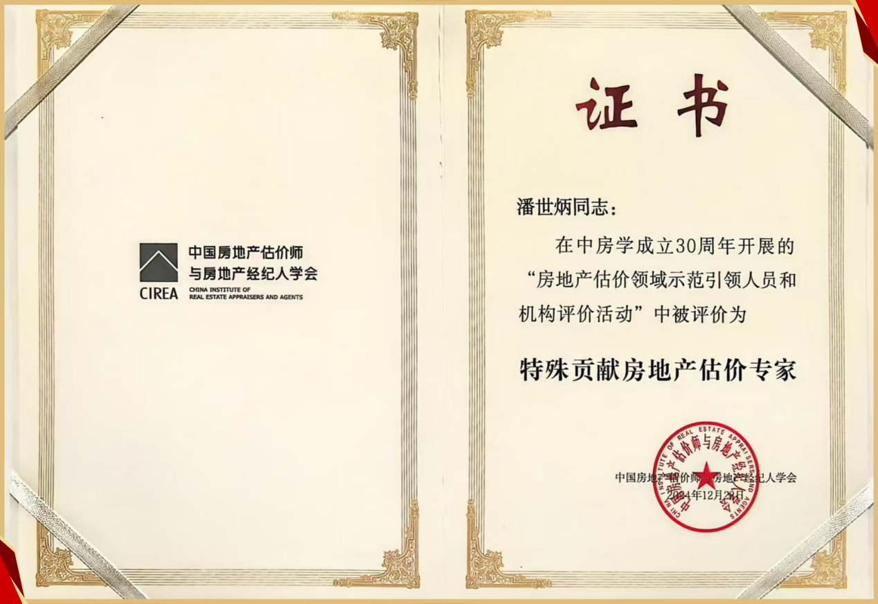 憑借自身的專業(yè)能力和卓越貢獻(xiàn),永業(yè)行黨委書記、董事長(zhǎng)潘世炳被評(píng)為 “特殊貢獻(xiàn)房地產(chǎn)估價(jià)專家”,常務(wù)副總裁吳學(xué)鋒獲評(píng) “優(yōu)秀房地產(chǎn)估價(jià)師”。