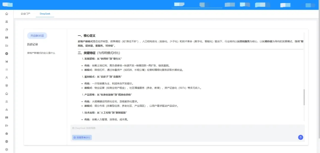 在人工智能技術(shù)浪潮席卷全球的當(dāng)下,加快鏈接人工智能技術(shù),是企業(yè)實(shí)現(xiàn)智能化轉(zhuǎn)型,搶抓戰(zhàn)略機(jī)遇的必然選擇。永業(yè)行公司積極擁抱時(shí)代變革,正式完成DeepSeek大模型部署,將AI技術(shù)深度融合公司自研數(shù)據(jù)中心,依托DeepSeek的基礎(chǔ)能力,結(jié)合公司多年沉淀的本地知識(shí)庫(kù),在流程運(yùn)營(yíng)、經(jīng)營(yíng)管理等多個(gè)領(lǐng)域?qū)崿F(xiàn)構(gòu)建高效、智能的新形態(tài)場(chǎng)景。
