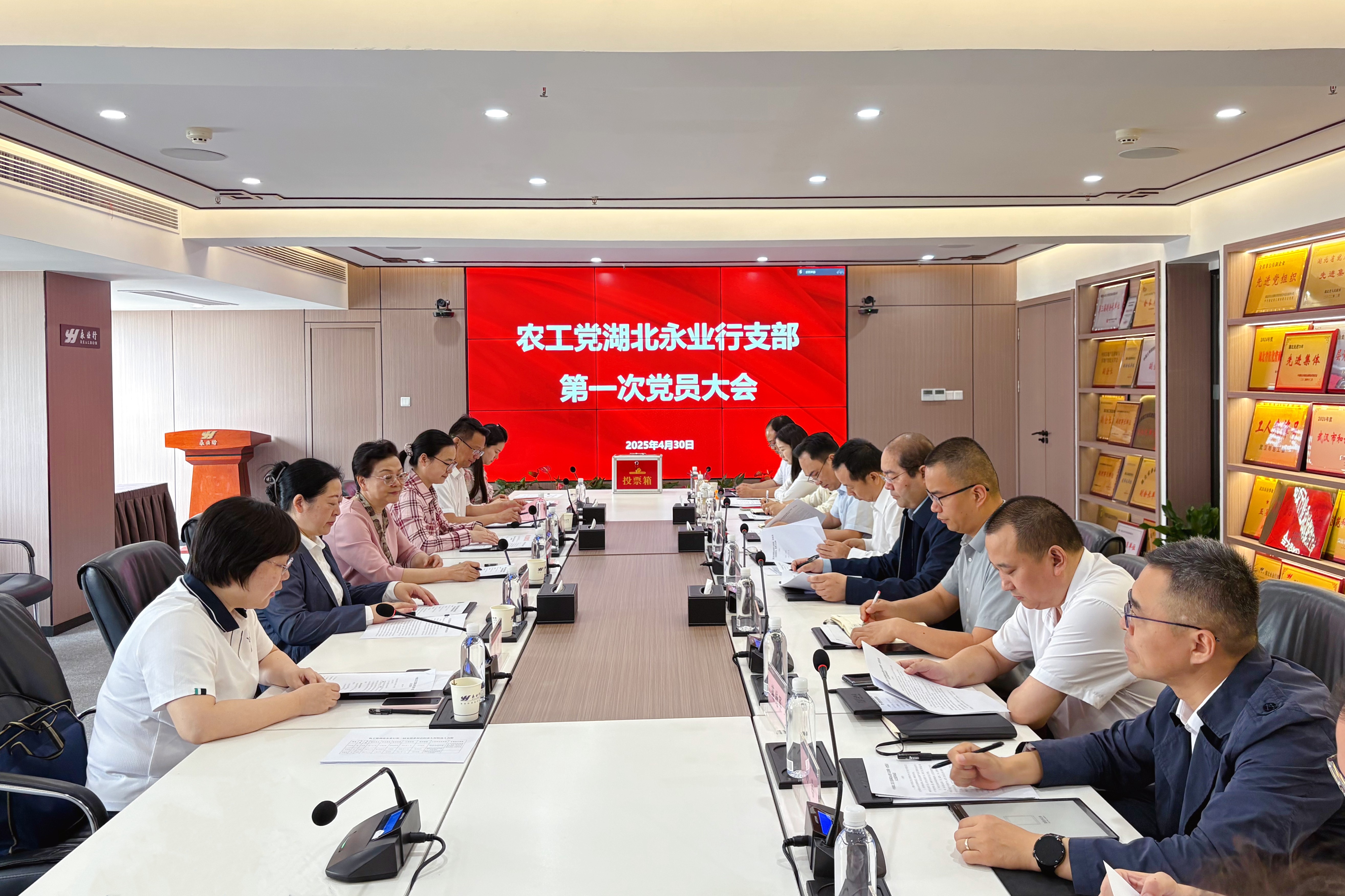 2025年4月30日,農(nóng)工黨湖北永業(yè)行支部第一次黨員大會(huì)在永業(yè)行舉行。湖北省政協(xié)常委、副秘書長、農(nóng)工黨湖北省委會(huì)專職副主委黃惠寧,農(nóng)工黨湖北省委會(huì)組織部部長宋亞瓊到會(huì)指導(dǎo),會(huì)議由農(nóng)工黨湖北省委會(huì)組織部副部長劉彌主持。永業(yè)行黨委書記、董事長潘世炳出席會(huì)議并致辭,永業(yè)行黨委委員、常務(wù)副總裁吳學(xué)鋒參加會(huì)議。