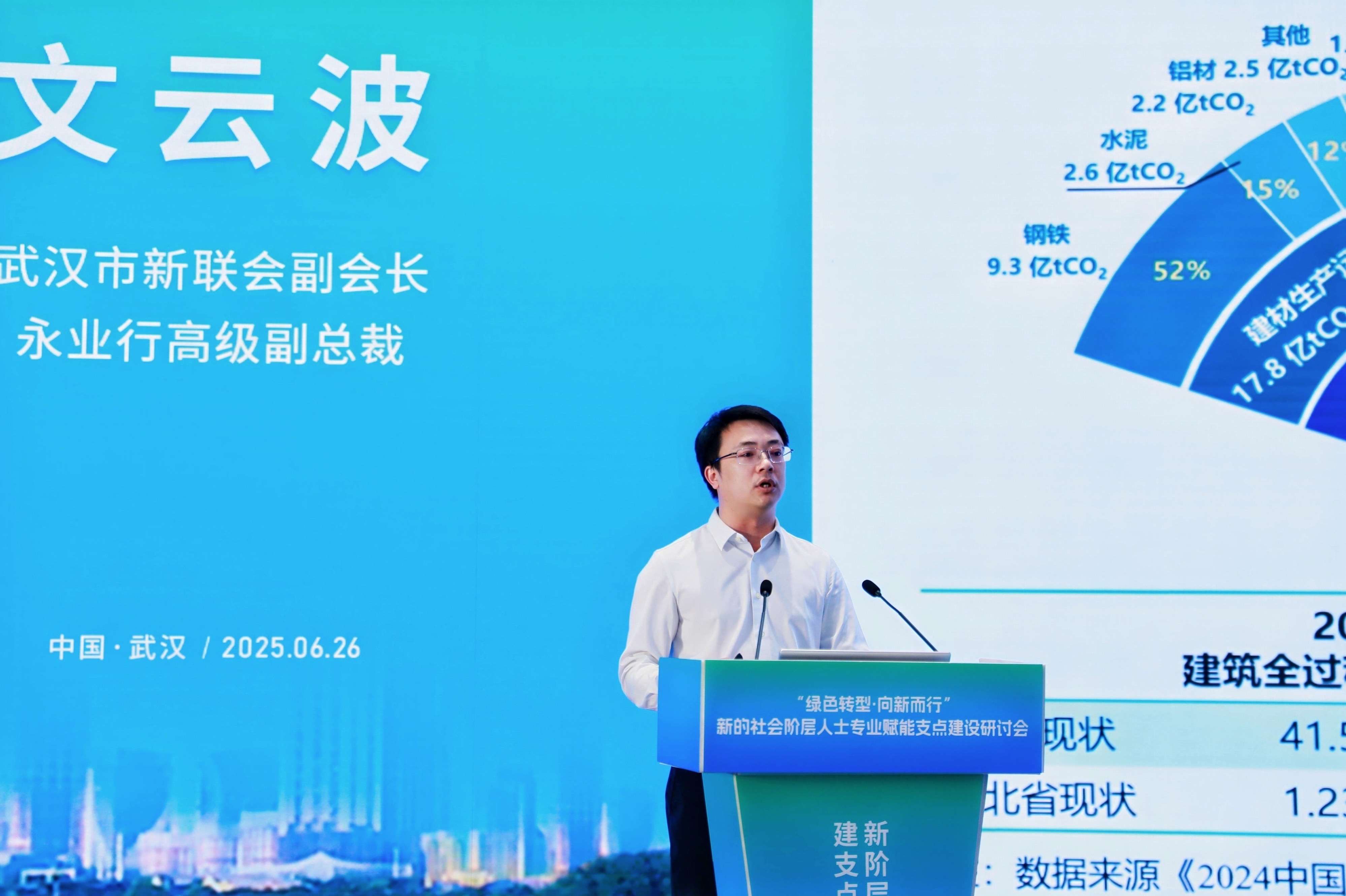 2025年6月26日,“綠色轉型 向新而行”新的社會階層人士專業(yè)賦能支點建設研討會在中碳登大廈召開。會議以“新階層,新力量,建支點,立新功”為主題,由湖北省新的社會階層人士聯(lián)誼會(以下簡稱“新聯(lián)會”)主辦,新聯(lián)會評估師分會、湖北永業(yè)行評估咨詢有限公司(以下簡稱“永業(yè)行”)承辦,碳排放權登記結算(武漢)有限責任公司、武漢雙碳產業(yè)研究院、武漢雙碳產業(yè)發(fā)展服務有限公司協(xié)辦。
