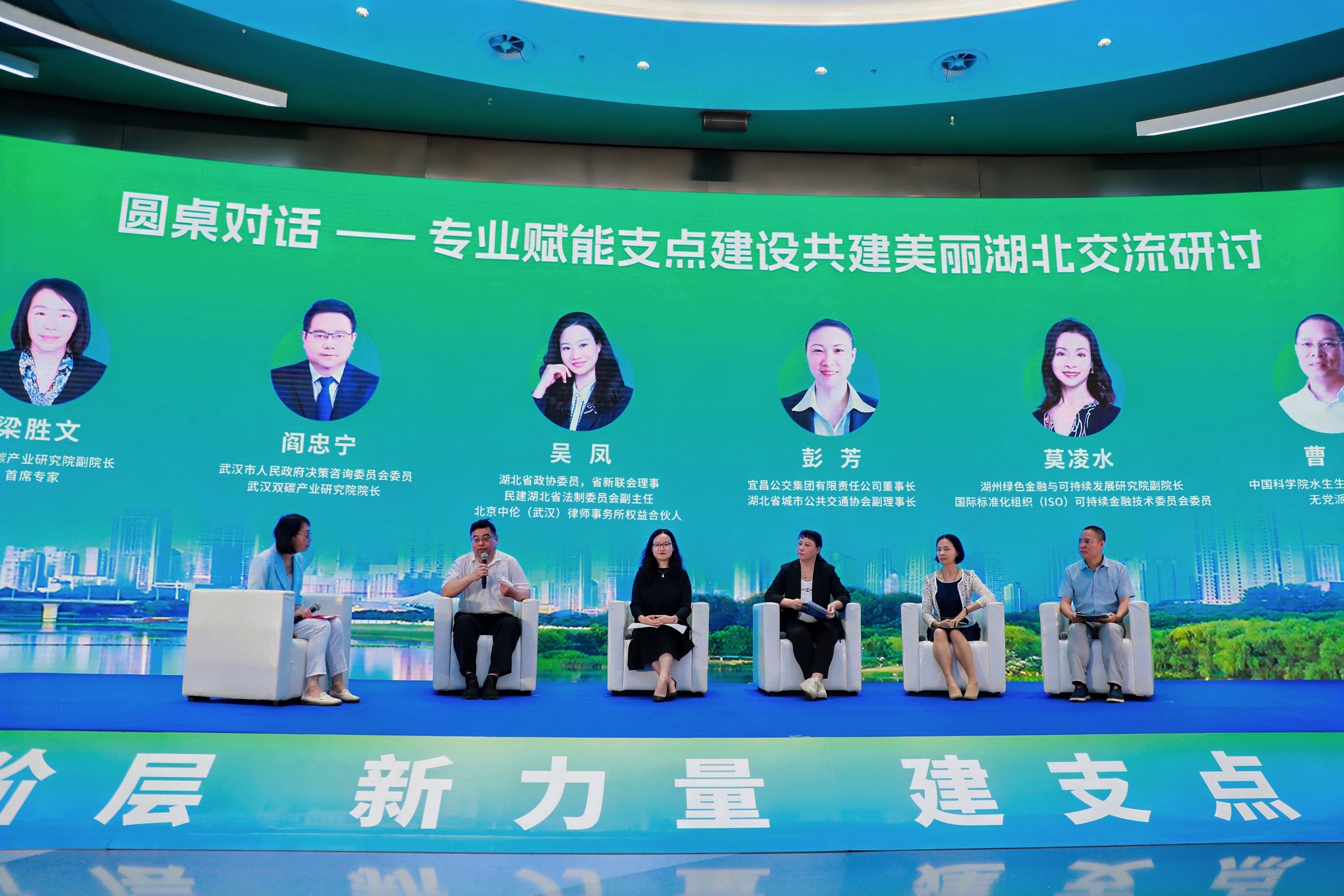 武漢雙碳產業(yè)研究院副院長、首席專家梁勝文主持本環(huán)節(jié)。會議邀請武漢市人民政府決策咨詢委員會委員,武漢雙碳產業(yè)研究院院長閻忠寧;湖北省政協(xié)委員,省新聯(lián)會理事,民建湖北省法制委員會副主任,北京中倫(武漢)律師事務所權益合伙人吳鳳;宜昌公交集團有限責任公司董事長,湖北省城市公共交通協(xié)會副理事長彭芳;湖州綠色金融與可持續(xù)發(fā)展研究院副院長,國際標準化組織(ISO)可持續(xù)金融技術委員會委員莫凌水;中國科學院水生生物研究所研究員,無黨派人士曹特等五位專家參加圓桌對話,圍繞新階層專業(yè)賦能支點建設共建美麗湖北交流研討。