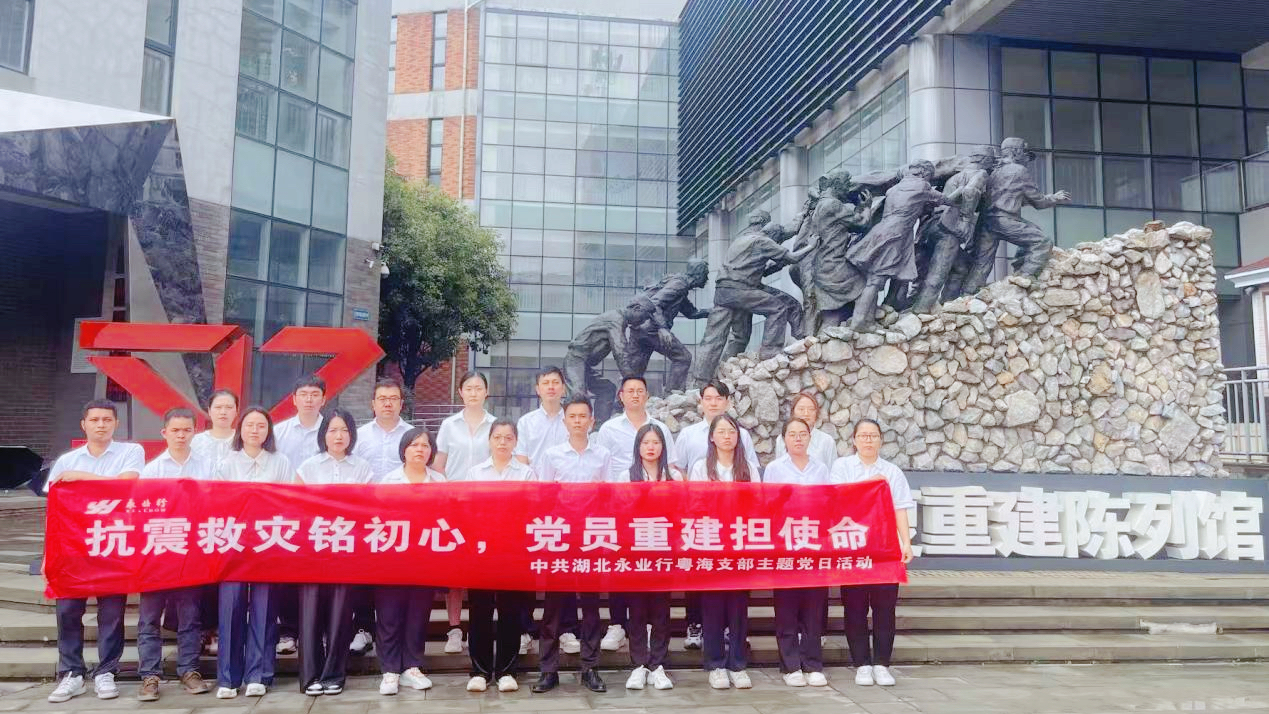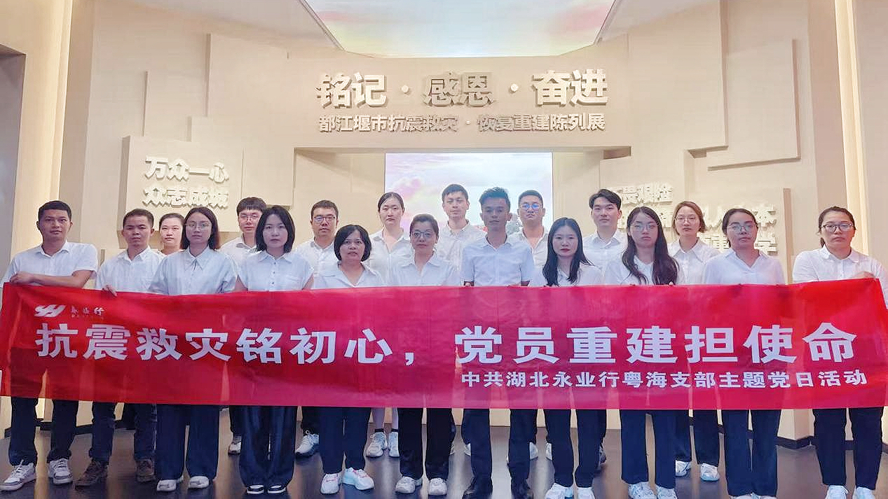 2025年6月22日,中共湖北永業(yè)行粵海支部委員會書記周攀帶領(lǐng)支部全體黨員、入黨積極分子及員工赴都江堰市抗震救災和恢復重建陳列館,開展“抗震救災銘初心 黨員重建擔使命”主題黨日活動,感悟“萬眾一心、眾志成城,不畏艱險、百折不撓,以人為本、尊重科學”的抗震救災精神,強化黨員責任擔當。