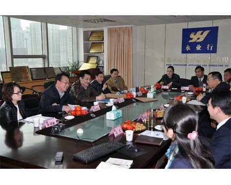 永業(yè)行董事長方國成,總裁潘世炳,副總裁靳劍輝、高軍、李翔、助理總裁田新丑、王琴,研究院副總經理唐佳林等熱情接待了劉處長一行。觀看永業(yè)行專題片后,董事長方國成詳細介紹了公司的基本情況,發(fā)展歷程及長遠規(guī)劃,總裁潘世炳就社會責任、品牌建設、永業(yè)行指數課題研究、辦公系統(tǒng)建設等內容與各來訪領導進行了交流。劉處長等對永業(yè)行人不斷開拓、謀求發(fā)展的精神予以肯定,表示將在永業(yè)行指數建設等研究領域為永業(yè)行提供更多的支持,也希望永業(yè)行繼續(xù)加強管理、深化研究領域、不斷做大做強,創(chuàng)立中介服務行業(yè)的品牌企業(yè)形象。