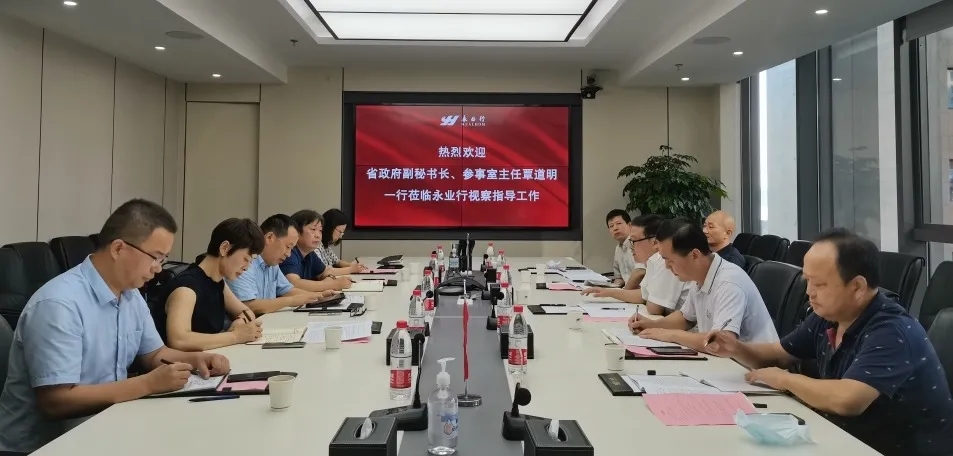 2021年9月26日,湖北省政府副秘書長、參事室主任覃道明一行蒞臨永業(yè)行調(diào)研指導(dǎo)工作。省政府辦公廳參事室參事業(yè)務(wù)處副處長、三級調(diào)研員熊世民、組織聯(lián)絡(luò)處副處長陳立軍、參事業(yè)務(wù)處一級調(diào)研員李修松、參事館員聯(lián)絡(luò)處副處長楊云林陪同調(diào)研。