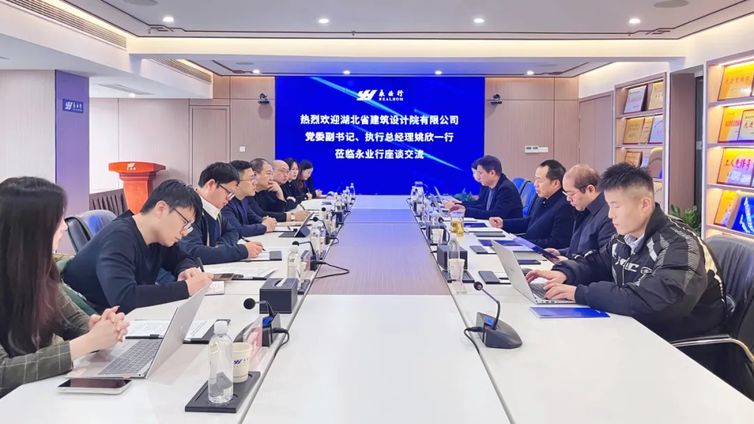2025年2月14日,湖北省建筑設(shè)計院有限公司黨委副書記、執(zhí)行總經(jīng)理姚欣一行蒞臨永業(yè)行座談交流,永業(yè)行黨委書記、董事長潘世炳,常務(wù)副總裁吳學(xué)鋒熱情接待并參加座談。