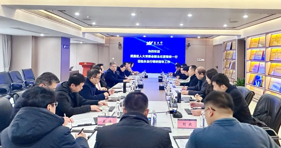 2025年2月25日,武昌區(qū)人大常委會副主任夏敬安,武昌區(qū)人大財經(jīng)委主任委員胡體宇,武昌區(qū)人大常委會預(yù)算工委主任倪方一行蒞臨永業(yè)行考察指導(dǎo)工作。永業(yè)行黨委書記、董事長潘世炳,常務(wù)副總裁吳學(xué)鋒,高級副總裁文云波等熱情接待并參加座談交流。