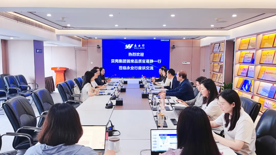 2025年4月25日,貝殼集團(tuán)首席品質(zhì)官葛靜一行蒞臨永業(yè)行,就貝殼的轉(zhuǎn)型歷程和經(jīng)驗(yàn)展開交流。永業(yè)行董事長潘世炳,常務(wù)副總裁吳學(xué)鋒等熱情接待并參加座談交流。