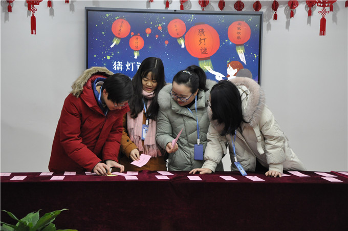 “與我同行”猜一字;“遇事不求人”打一成語;“八駿日行三萬里”打《三國演義》人名……諸如此類的燈謎近百余條。有人“團(tuán)戰(zhàn)”,有人“獨斗”;有人一頭霧水,有人頓生靈感;有人眉頭緊鎖,有人開懷大笑。領(lǐng)獎處更是一番熱鬧忙碌的場景,猜對謎底的小伙伴們紛紛收獲了薯片、飲料、愛心大棗等戰(zhàn)利品,禮輕情意重,小小的禮品表達(dá)了公司對大家的問候與祝福。