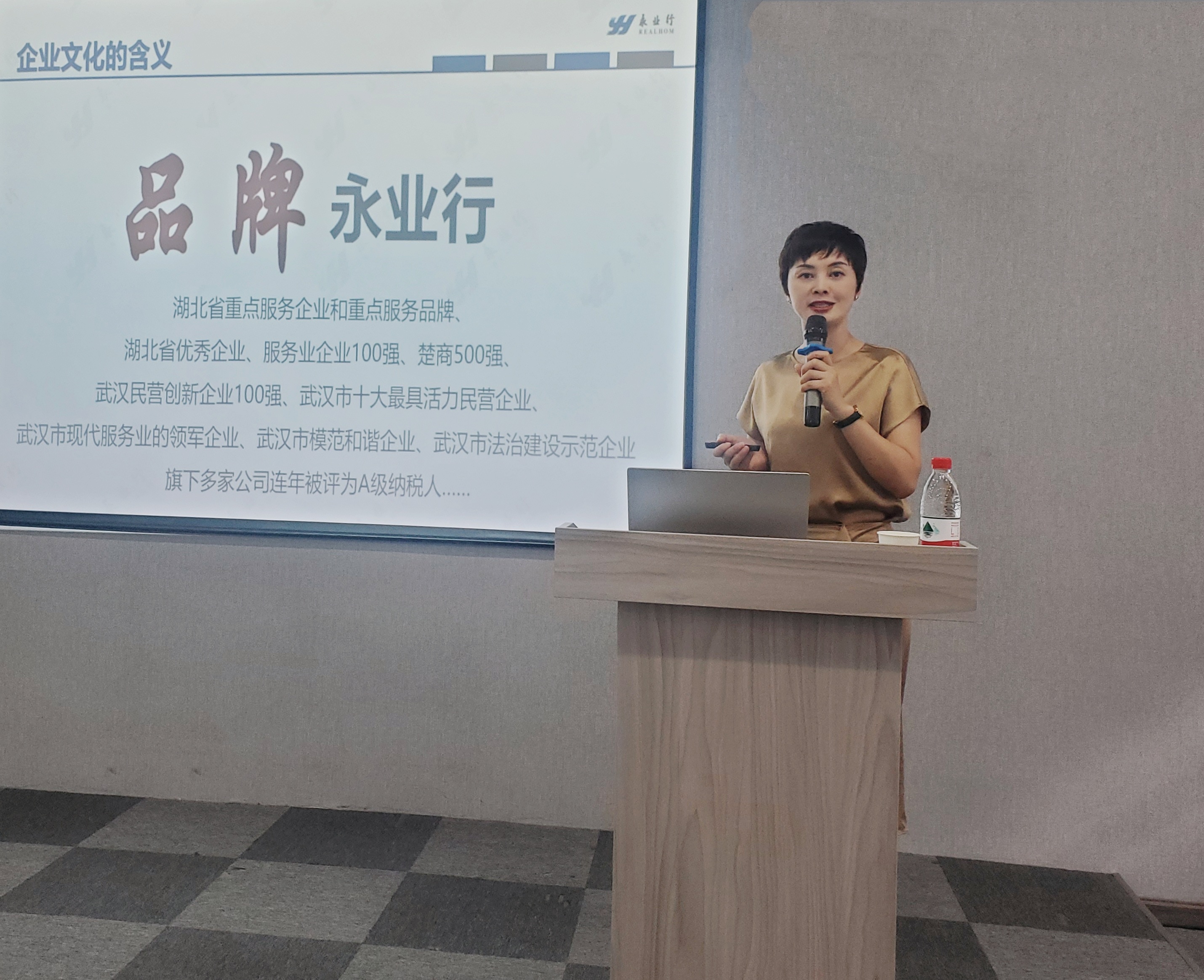 企業(yè)文化是企業(yè)寶貴的精神財(cái)富,為引導(dǎo)新員工自覺踐行永業(yè)行的文化理念,增強(qiáng)思想認(rèn)同、價(jià)值認(rèn)同和情感認(rèn)同,公司輪值總裁王琴為新員工系統(tǒng)回顧了企業(yè)文化的建設(shè)歷程,以及在各個(gè)時(shí)期彰顯出的企業(yè)精神,勉勵(lì)新員工在新的平臺(tái)上把永業(yè)行文化傳承好、踐行好,用文化引領(lǐng)發(fā)展。