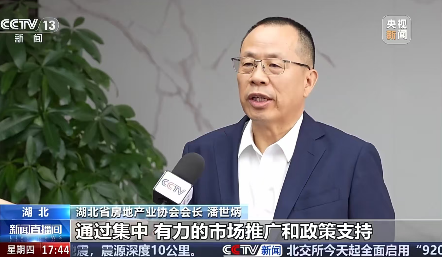 2025年10月9日,中央電視臺(tái)《新聞直播間》欄目播出“湖北多地舉行房交會(huì) 樓市呈企穩(wěn)回升勢頭”報(bào)道,湖北省房地產(chǎn)業(yè)協(xié)會(huì)會(huì)長、永業(yè)行董事長潘世炳接受央視記者采訪。
