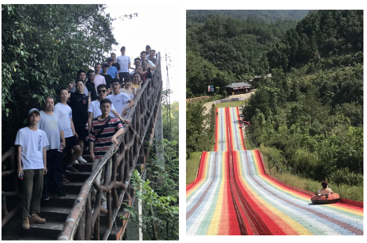 第二天上午,小伙伴集體游玩柃密小鎮(zhèn)景區(qū)的、參與體驗了“9D玻璃橋、七彩滑道、卡丁車”等景點游樂設(shè)施,在大自然中感受驚險與刺激,在歷時四個小時的游園中,大家互幫互助,加油鼓勁,鍛煉了員工直面恐懼、勇于嘗試的心理素質(zhì)。