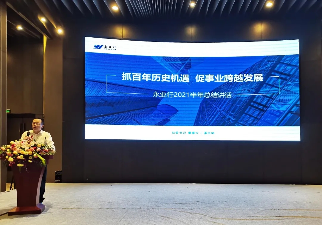2021年6月27-28日,永業(yè)行2021年度中期工作總結(jié)會(huì)議在海南博鰲亞洲論壇國(guó)際會(huì)議中心隆重召開(kāi),全面總結(jié)上半年工作,研判當(dāng)前宏觀經(jīng)濟(jì)形勢(shì),深入分析工作中的問(wèn)題與不足,扎實(shí)部署下半年重點(diǎn)工作。永業(yè)行董事長(zhǎng)潘世炳出席會(huì)議并作重要講話,輪值總裁王琴作半年度工作報(bào)告,副總裁雷小軍、文云波、吳學(xué)鋒,助理總裁金建華、雷小明及各部門負(fù)責(zé)人、班子成員、年度標(biāo)兵代表等70余人參加會(huì)議。