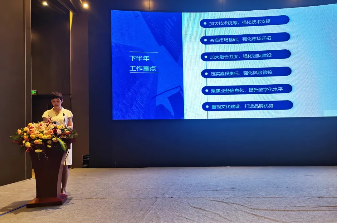 輪值總裁王琴就2021年上半年公司整體經(jīng)營(yíng)情況進(jìn)行了分析,并對(duì)業(yè)務(wù)指標(biāo)完成情況進(jìn)行了通報(bào),既肯定了大家在上半年的工作中的努力和成績(jī),也指出了存在的不足,圍繞技術(shù)統(tǒng)籌、市場(chǎng)開(kāi)拓、團(tuán)隊(duì)建設(shè)、風(fēng)險(xiǎn)防控、信息化建設(shè)、企業(yè)文化等方面提出了新的要求和希望。她強(qiáng)調(diào),圍繞國(guó)家經(jīng)濟(jì)轉(zhuǎn)型、創(chuàng)新驅(qū)動(dòng)的大趨勢(shì),行業(yè)市場(chǎng)時(shí)刻在發(fā)生著新的變化,全體永業(yè)行人要凝心聚力,攜手共進(jìn),繼續(xù)深化改革、堅(jiān)持創(chuàng)新發(fā)展,以更加強(qiáng)大的內(nèi)動(dòng)力,為永業(yè)行“三年行動(dòng)計(jì)劃”的落地開(kāi)創(chuàng)新的局面。