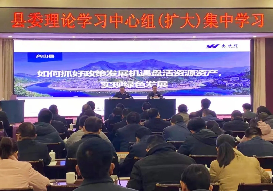 2021年12月24日,應(yīng)中共興山縣委邀請,永業(yè)行副總裁文云波在縣委理論學(xué)習(xí)中心組會上,以《如何抓好政策發(fā)展機(jī)遇,盤活資產(chǎn)資源,實現(xiàn)綠色發(fā)展》為題作“十四五”發(fā)展思路培訓(xùn)交流。興山縣委書記曹宏偉主持學(xué)習(xí)。
