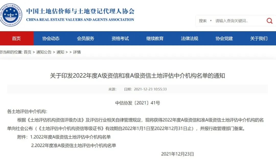 土地評(píng)估中介機(jī)構(gòu)A級(jí)資信是土地估價(jià)行業(yè)的最高資信等級(jí),是中估協(xié)在全國(guó)土地估價(jià)行業(yè)內(nèi)針對(duì)土地評(píng)估中介機(jī)構(gòu)社會(huì)公信力、專業(yè)服務(wù)能力、職業(yè)道德操守等開展的綜合評(píng)價(jià)工作,旨在加強(qiáng)行業(yè)自律建設(shè)、構(gòu)建行業(yè)信用體系、提升行業(yè)社會(huì)信譽(yù)。