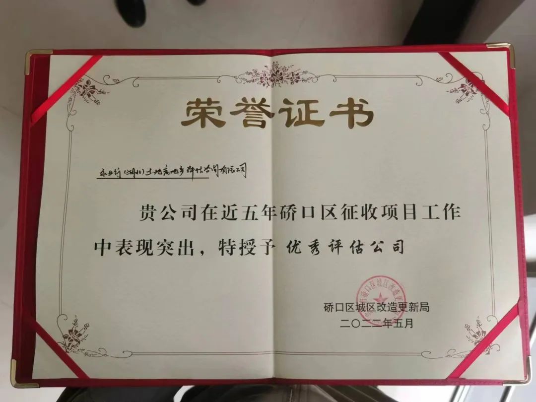 2022年5月14日,武漢市硚口區(qū)城區(qū)改造更新局舉行“硚口區(qū)國有土地上房屋征收第三方機構(gòu)‘比學(xué)趕超’工作交流大會”。硚口區(qū)區(qū)委常委徐崗、副區(qū)長邱華威,硚口區(qū)城區(qū)改造更新局局長王凱等出席會議,并圍繞硚口區(qū)城市更新現(xiàn)狀及未來發(fā)展路徑、第三方機構(gòu)項目推進(jìn)方式等作工作指導(dǎo)。永業(yè)行價值評估事業(yè)群執(zhí)行董事劉勛濤、營銷中心市場副總監(jiān)蔣柯受邀參與座談交流。會議對表現(xiàn)突出的第三方機構(gòu)進(jìn)行了表彰,永業(yè)行獲評為“硚口區(qū)征收項目優(yōu)秀評估公司”。