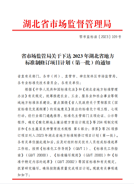 近日,根據(jù)《湖北省市場監(jiān)督管理局關(guān)于下達(dá)2023年湖北省地方標(biāo)準(zhǔn)制修訂項目計劃(第一批)的通知》,永業(yè)行作為牽頭單位負(fù)責(zé)起草的《湖北省老舊小區(qū)改造項目投資估算編制規(guī)范》和作為主編單位負(fù)責(zé)起草的《土地儲備計劃編制規(guī)范》2個項目成功立項。