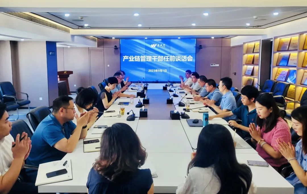 2023年9月1日,永業(yè)行組織召開產(chǎn)業(yè)鏈管理干部任前談話會(huì),公司黨委書記、董事長潘世炳,常務(wù)副總裁吳學(xué)鋒,聯(lián)席總裁王琴及相關(guān)高管,組織人事部總經(jīng)理李斯,35名擬任干部通過線上或線下的形式出席會(huì)議。