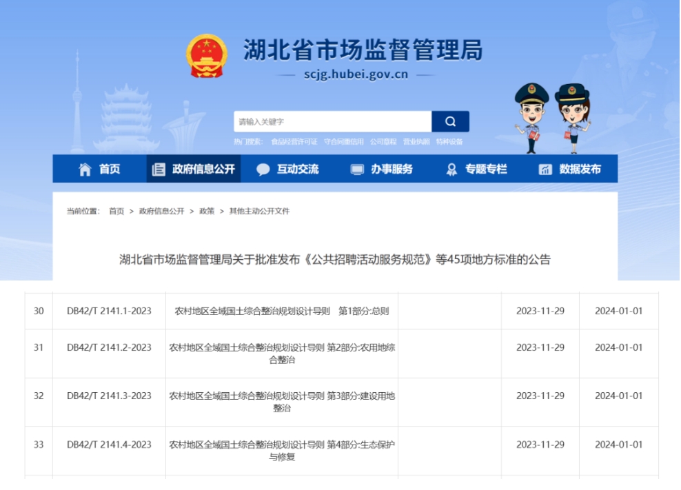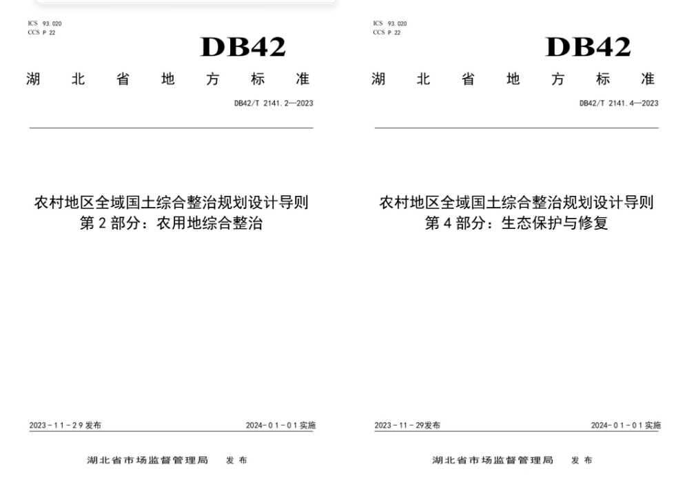 近日,湖北省市場監(jiān)督管理局發(fā)布45項(xiàng)地方標(biāo)準(zhǔn)的公告,永業(yè)行參編的《農(nóng)村地區(qū)全域國土綜合整治規(guī)劃設(shè)計(jì)導(dǎo)則 第2部分:農(nóng)用地綜合整治》(標(biāo)準(zhǔn)號:DB42/T 2141.2-2023)、《農(nóng)村地區(qū)全域國土綜合整治規(guī)劃設(shè)計(jì)導(dǎo)則 第4部分:生態(tài)保護(hù)與修復(fù)》(標(biāo)準(zhǔn)號:DB42/T 2141.4-2023)批準(zhǔn)發(fā)布。