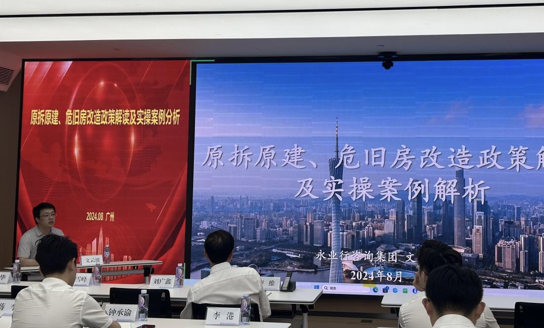 2024年8月12日,中建三局集團華南有限公司組織召開2024年第三期“華南投資課堂”專題培訓,中建三局華南公司副總經(jīng)理李維出席會議。永業(yè)行高級副總裁文云波受邀作原拆原建、危舊房改造政策及實操案例解析培訓交流。