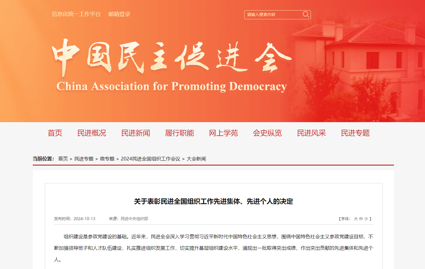2024年10月13日,民進(jìn)全國(guó)組織工作會(huì)議在北京召開。民進(jìn)中央主席蔡達(dá)峰出席開幕式并講話,常務(wù)副主席朱永新,副主席王剛、高友東、何志敏出席開幕會(huì)。會(huì)議現(xiàn)場(chǎng)宣讀了《關(guān)于表彰民進(jìn)全國(guó)組織工作先進(jìn)集體、先進(jìn)個(gè)人的決定》,并為受表彰的先進(jìn)集體和先進(jìn)個(gè)人代表頒獎(jiǎng)。永業(yè)行副總裁、民進(jìn)湖北永業(yè)行支部主委金建華榮獲“民進(jìn)全國(guó)組織工作先進(jìn)個(gè)人”榮譽(yù)稱號(hào)。
